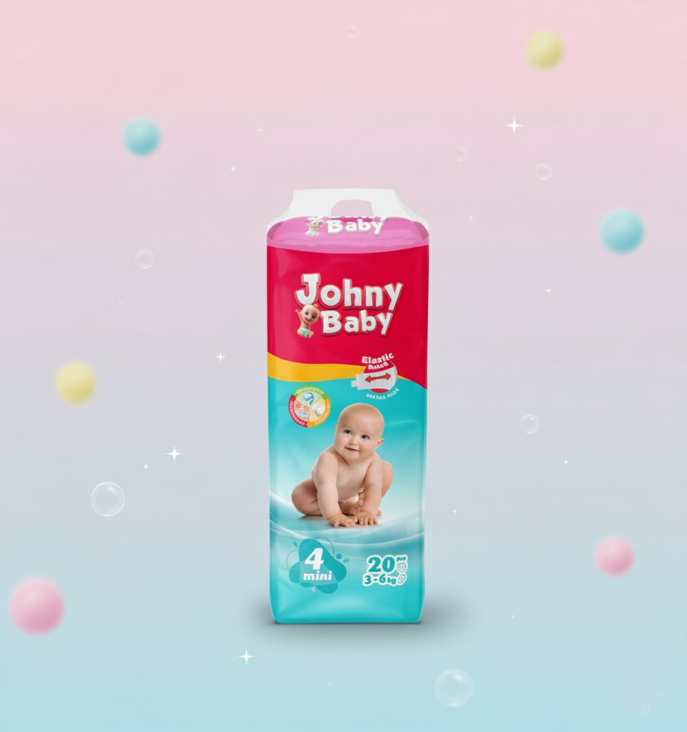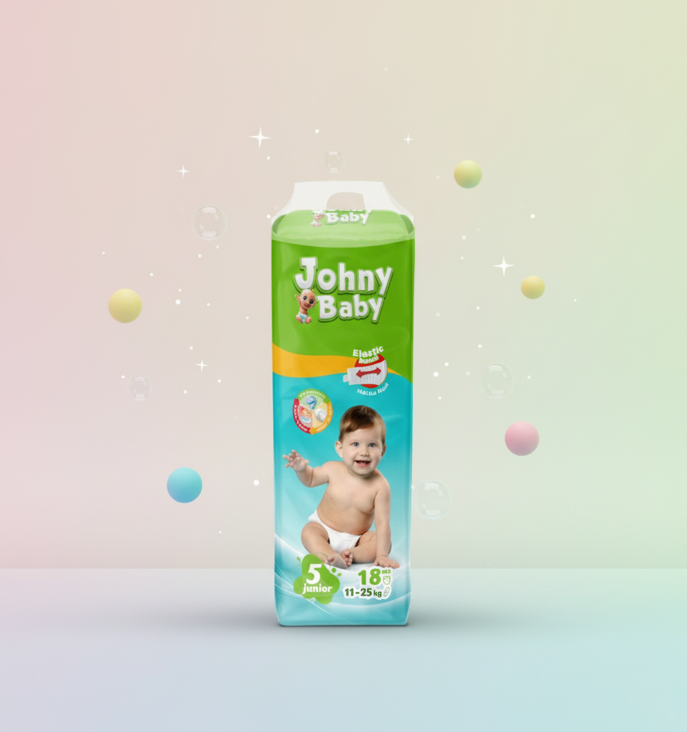حفاضات Johny Baby مصنوعة بعناية لضمان راحة طفلك طوال اليوم، فهي تتميز بسطح خارجي فائق النعومة، وطبقات عالية الامتصاص، ومواد قابلة للتنفس تحمي البشرة الحساسة وتسمح بحرية الحركة. وبفضل قنوات الامتصاص القوية التي توفر أقصى درجات الجفاف، والحواجز الجانبية المضادة للتسرب، والملمس اللطيف المناسب للاستخدام لساعات طويلة، تقدم Johny Baby حماية موثوقة بسعر اقتصادي — مما يجعلها الخيار المثالي للأمهات الباحثات عن راحة تدوم، وأداء يمكن الاعتماد عليه، وقيمة ممتازة في كل حفاضة.